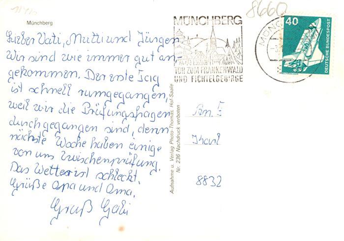 73890978 alte Postkarte Muenchberg Oberfranken Fliegeraufnahme postalisch gelaufen Erhaltung siehe scans [FriedD77] KatCode: 11110009475154