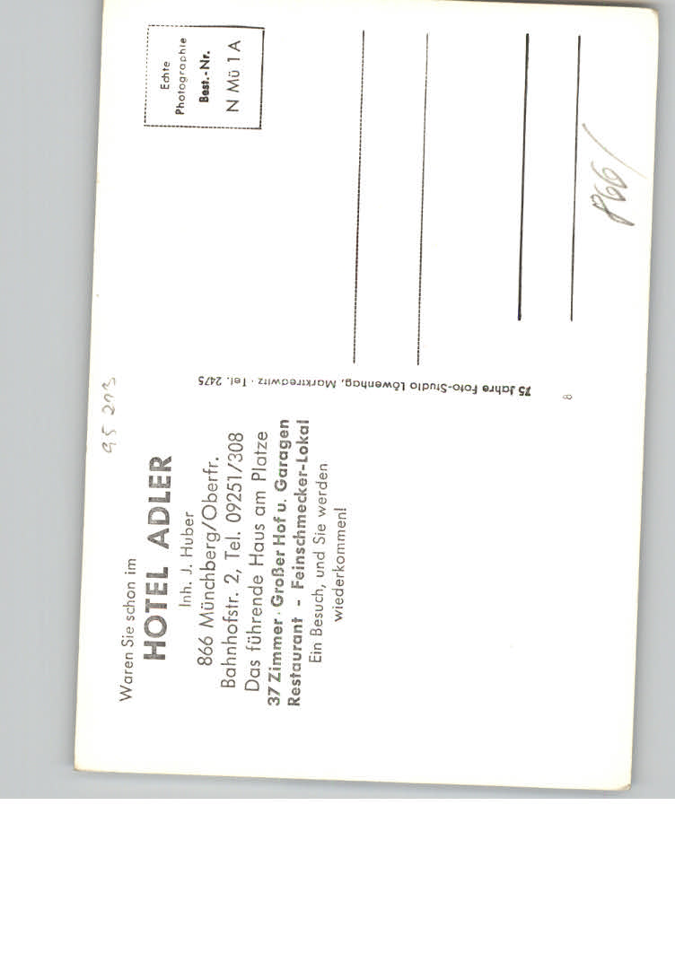 31169685 Muenchberg Oberfranken Hotel Adler postalisch nicht gelaufen KatCode: 11110009475154