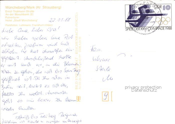 72034573 alte Postkarte Muencheberg Ernst Thaelmann Strasse Pulverturm Hotel postalisch gelaufen Erhaltung siehe scans KatCode: 11110012064317