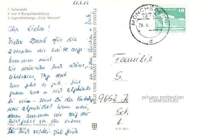 73618142 alte Postkarte Muenchehofe Obersdorf Teilansicht Bungalowsiedlung Jugendherberge Erich Weinert postalisch gelaufen Erhaltung siehe scans [WerneD78] KatCode: 11110012064317