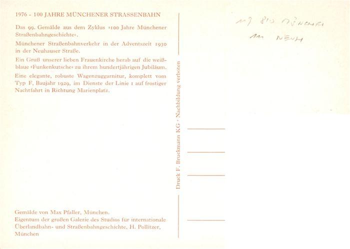 73898117 Muenchen Bayern 100 Jahre Muenchener Strassenbahn Kuenstlerkarte postalisch nicht gelaufen Erhaltung siehe scans [WerneD78] Wern Katcode 11110009162000