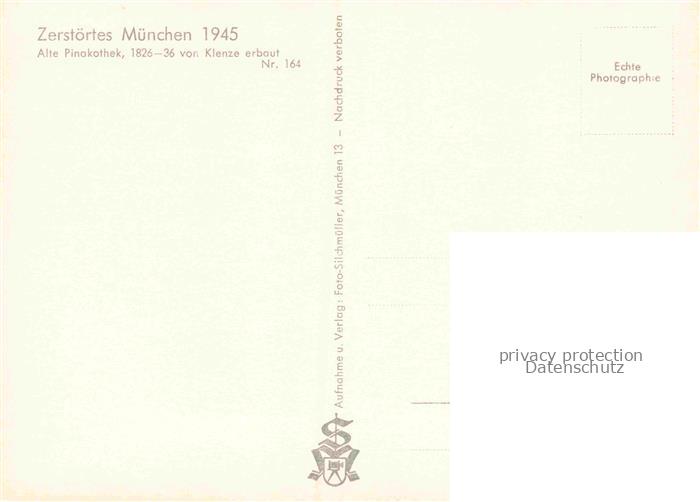 74122036 MueNCHEN Bayern Alte Pinakothek im zerstoerten Muenchen 1945 postalisch nicht gelaufen Erhaltung siehe scans [WerneD78] KatCode: 11110009162000