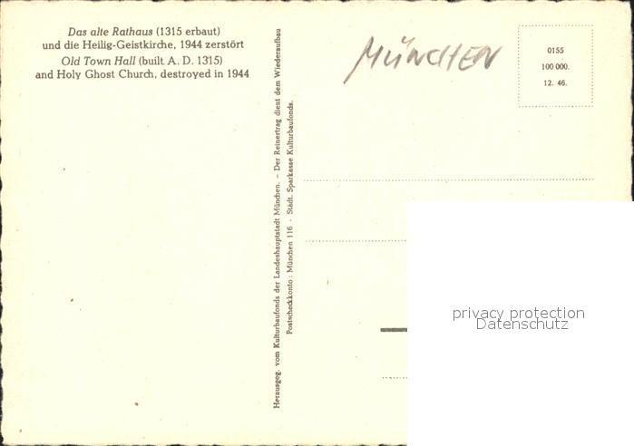 72149560 Muenchen Bayern Altes Rathaus und Heilig Geistkirche zerstoert 1944 Kuenstlerkarte postalisch nicht gelaufen Erhaltung siehe scans KatCode: 11110009162000