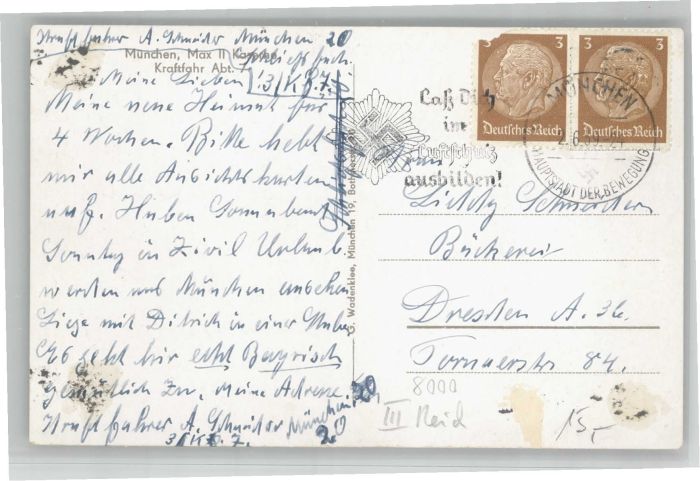 40742872 Muenchen Bayern aserne Kraftfahrtabteilung postalisch gelaufen Alte Ansichtskarte Postkarte alte Postkarte Katcode 11110009162000