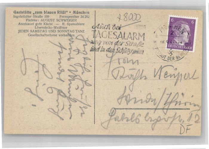 40742774 Muenchen Bayern aststaette zum blauen Roessl x postalisch gelaufen Alte Ansichtskarte Postkarte alte Postkarte Katcode 11110009162000
