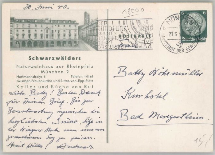 40742914 Muenchen Bayern aturweinhaus zur Rheinpfalz postalisch gelaufen Alte Ansichtskarte Postkarte alte Postkarte Katcode 11110009162000