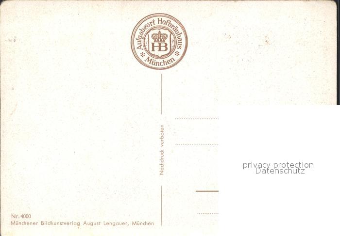 72151248 Muenchen Bayern Aufenthaltsbestaetigung Hofbraeuhaus postalisch nicht gelaufen Erhaltung siehe scans KatCode: 11110009162000