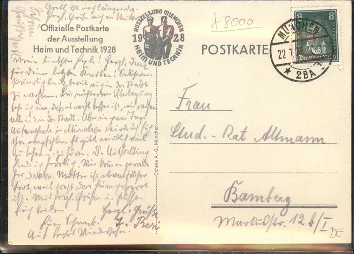 41062597 Muenchen Bayern Ausstellung Heim und Technik postalisch gelaufen Alte Ansichtskarte Postkarte alte Postkarte Elvi Katcode 11110009162000