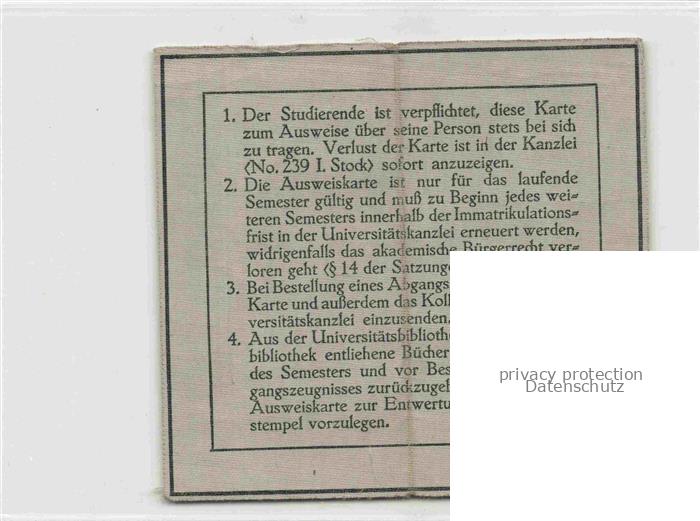 74080726 Muenchen Bayern Ausweiskarte Universitaet postalisch nicht gelaufen Keine Postkarte (siehe scan) Erhaltung siehe scans [FriedD77] Keine Postkarte (siehe scan) Frie Katcode 11110009162000