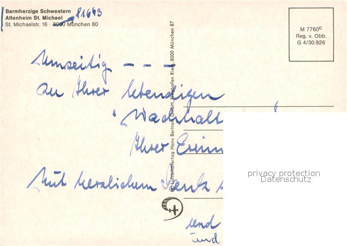 73745110 Muenchen Bayern Barmherzige Schwestern Altenheim St Michael Fliegeraufnahme postalisch nicht gelaufen Erhaltung siehe scans [WerneD78] Wern Katcode 11110009162000