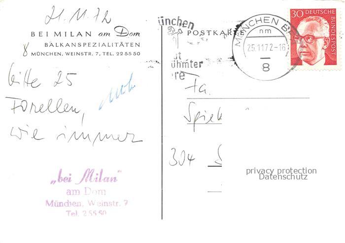 74096482 alte Postkarte MueNCHEN Bayern Bei Milan am Dom Balkanspezialitaeten postalisch gelaufen Erhaltung siehe scans [IrynaD87] KatCode: 11110009162000