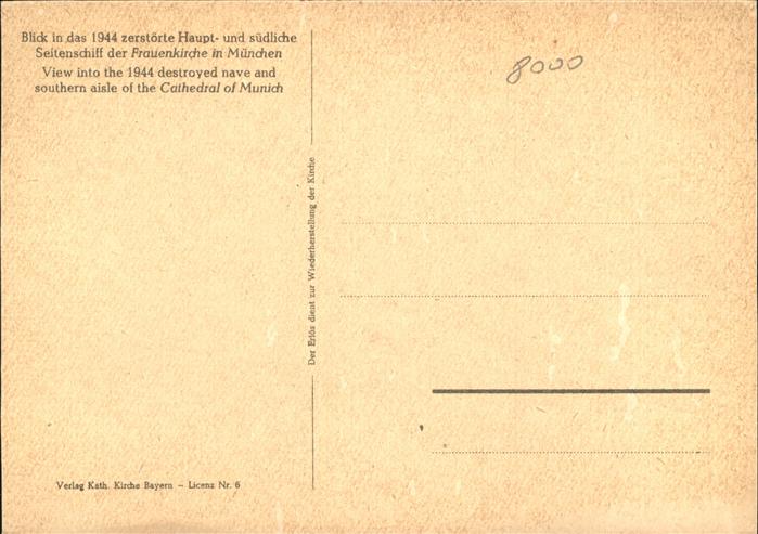 41325669 Muenchen Bayern Blick in das 1944 zerstoerte Haupt und suedl Seitenschiff der Frauenkirche postalisch nicht gelaufen gute Erhaltung Alte Ansichtskarte Postkarte hz_W Katcode 11110009162000