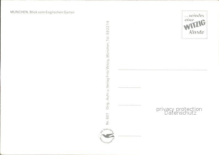 72329427 Muenchen Bayern Blick vom Englischen Garten Stadtzentrum Frauenkirche Kuenstlerkarte postalisch nicht gelaufen Erhaltung siehe scans KatCode: 11110009162000
