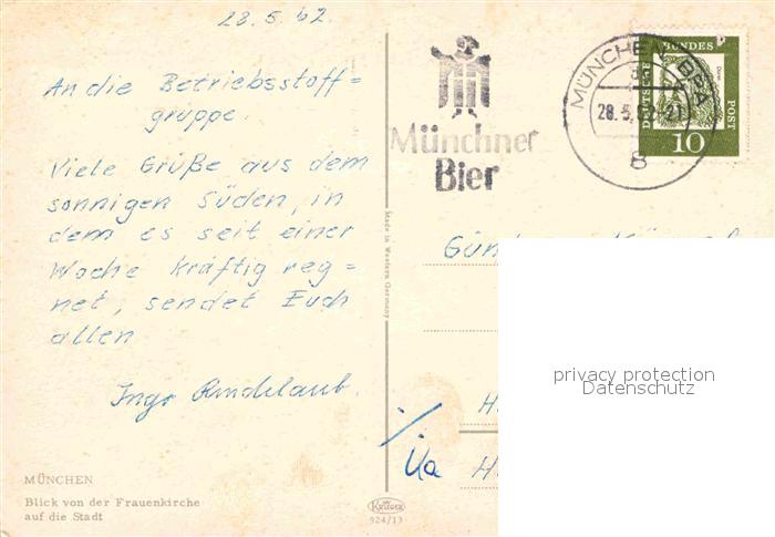72843615 alte Postkarte Muenchen Bayern Blick von der Frauenkirche postalisch gelaufen Erhaltung siehe scans [LiesaD40] KatCode: 11110009162000