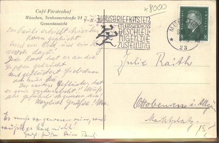 41058836 Muenchen Bayern Cafe Fuerstenhof postalisch gelaufen Alte Ansichtskarte Postkarte alte Postkarte Elvi Katcode 11110009162000