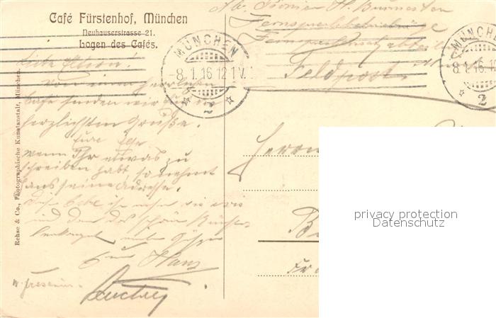 43184469 alte Postkarte Muenchen Bayern Cafe Fuerstenhof postalisch gelaufen Feldpost Erhaltung siehe scans [FriedD77] KatCode: 11110009162000