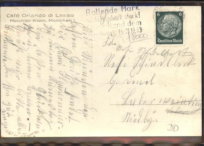 41058885 Muenchen Bayern Cafe Orlando di Lasso postalisch gelaufen Alte Ansichtskarte Postkarte alte Postkarte Elvi Katcode 11110009162000