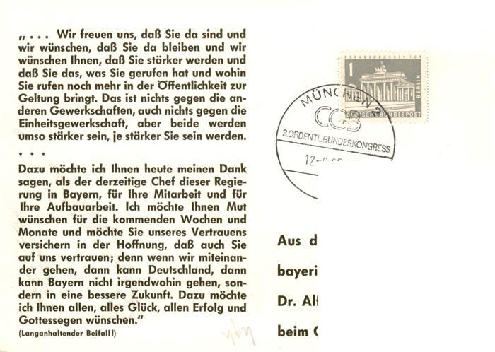 73888151 Muenchen Bayern CGB 3. Ordentlicher Bundeskongress Hacker-Keller Sonderstempel postalisch gelaufen Erhaltung siehe scans [FriedD77] alte Postkarte Frie Katcode 11110009162000