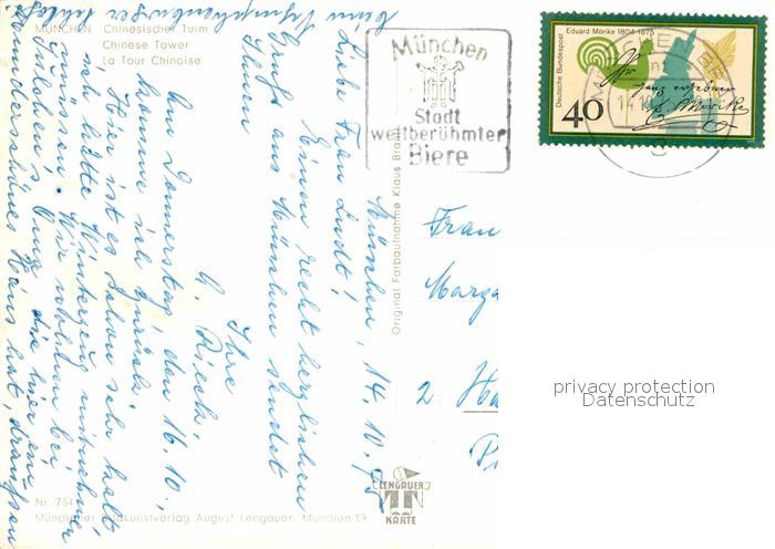 72758105 alte Postkarte Muenchen Bayern Chinesischer Turm postalisch gelaufen Erhaltung siehe scans [LiesaD40] KatCode: 11110009162000