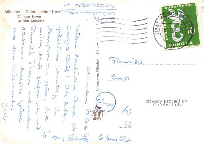 74099479 alte Postkarte MueNCHEN Bayern Chinesischer Turm mit Gaststaette postalisch gelaufen Erhaltung siehe scans [WerneD78] KatCode: 11110009162000