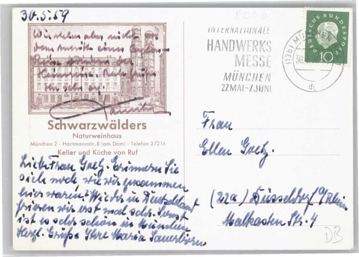 40742920 Muenchen Bayern chwarzwaelders Naturweinhaus Zur Rheinpfalz x postalisch gelaufen Alte Ansichtskarte Postkarte alte Postkarte Katcode 11110009162000