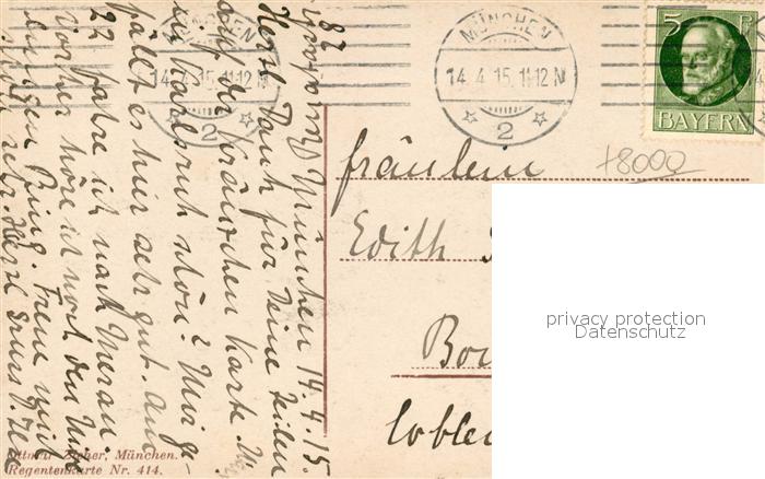 43148903 alte Postkarte Muenchen Bayern Denkmal postalisch gelaufen Erhaltung siehe scans [KathaD81] KatCode: 11110009162000