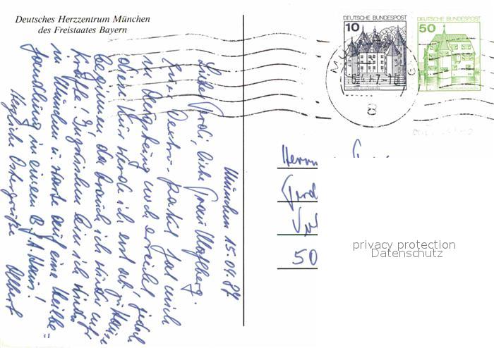 72662549 alte Postkarte Muenchen Bayern Deutsches Herzzentrum postalisch gelaufen Erhaltung siehe scans [NatalD47] KatCode: 11110009162000