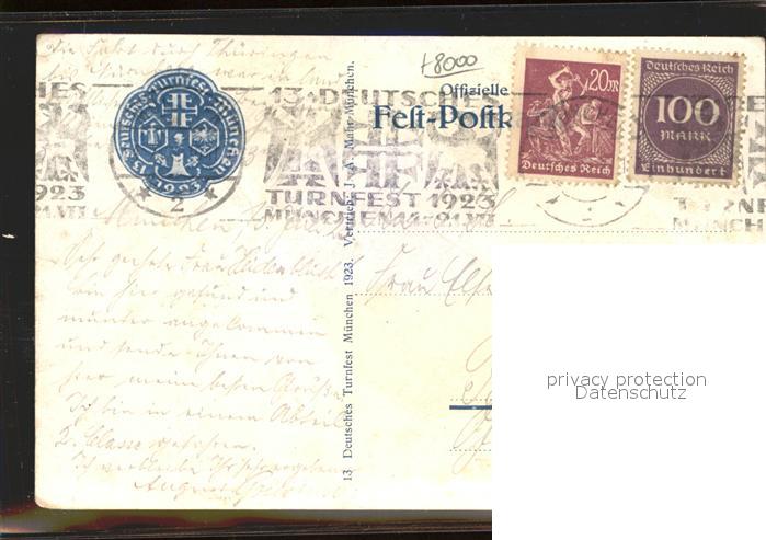 41545934 Muenchen Bayern Deutsches Turnfest 1923 Kuenstlerkarte Ritter auf Pferd postalisch gelaufen Erhaltung siehe scans Alte Ansichtskarte Postkarte alte Postkarte hz_L Katcode 11110009162000