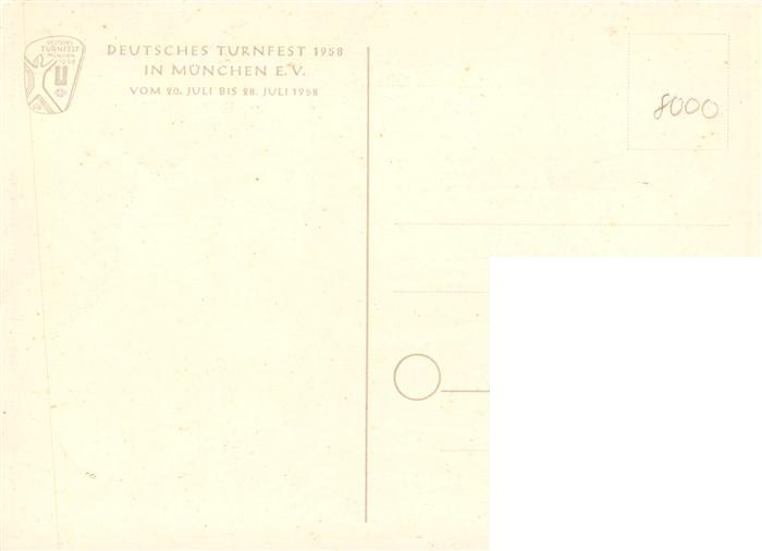 73891647 Muenchen Bayern Deutsches Turnfest Muenchen 1958 Plakat postalisch nicht gelaufen Erhaltung siehe scans [FriedD77] Frie Katcode 11110009162000
