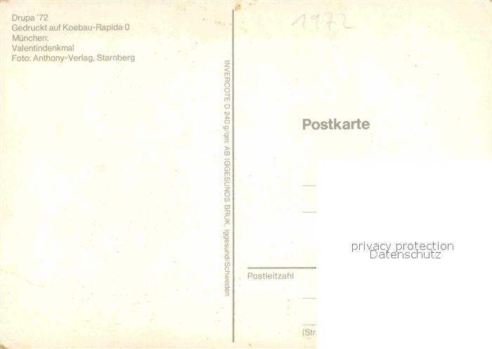 72896456 Muenchen Bayern Drupa 72 Valentindenkmal postalisch nicht gelaufen Erhaltung siehe scans [LiesaD40] KatCode: 11110009162000