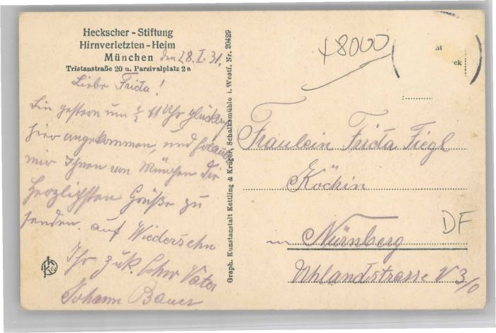 40742769 Muenchen Bayern eckscher-Stiftung postalisch gelaufen Alte Ansichtskarte Postkarte alte Postkarte Katcode 11110009162000
