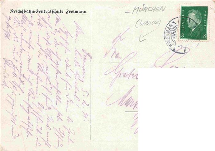 73974370 Muenchen Bayern Eisenbahn Zentralschule Freimann Kuenstlerkarte postalisch gelaufen Erhaltung siehe scans [FriedD77] alte Postkarte Frie Katcode 11110009162000