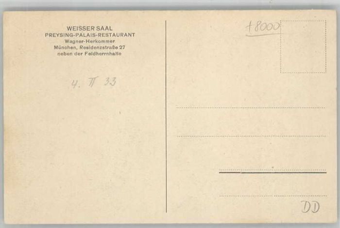 40638232 Muenchen Bayern eisser Saal Preysing Palais Restaurant postalisch nicht gelaufen Alte Ansichtskarte Postkarte Katcode 11110009162000