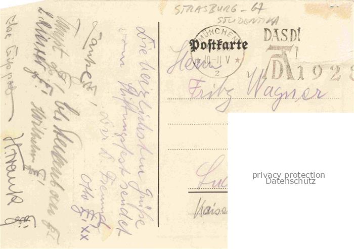 74098608 alte Postkarte MueNCHEN Bayern Erwinia Muenchen genannt nach der Erbauer des Strassburger Muensters Erwin von Steinbach Studentika Kuenstlerkarte postalisch gelaufen Erhaltung siehe scans [FriedD77] KatCode: 11110009162000
