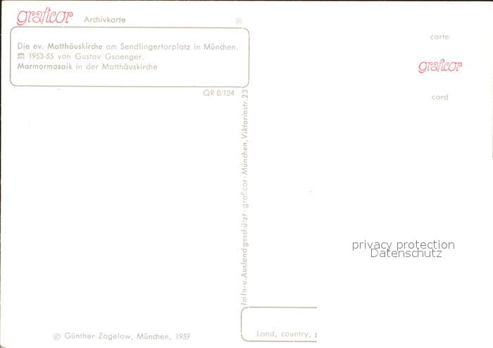 72135157 Muenchen Bayern Evangelische Matthaeuskirche Marmormosaik postalisch nicht gelaufen Erhaltung siehe scans KatCode: 11110009162000