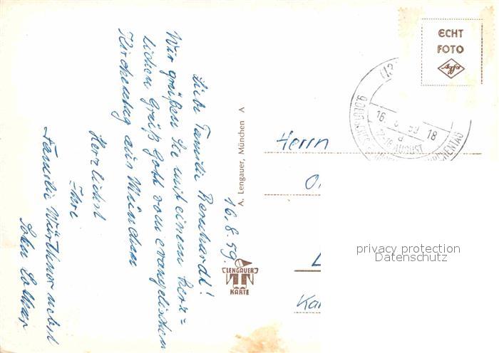 72821168 alte Postkarte Muenchen Bayern Evangelischer Kirchentag 1959 postalisch gelaufen Erhaltung siehe scans [AndreD76] KatCode: 11110009162000