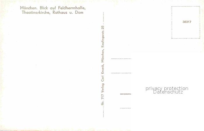 72889746 Muenchen Bayern Feldherrnhalle Theatinerkirche Rathaus Dom Alpen postalisch nicht gelaufen Erhaltung siehe scans [FriedD77] KatCode: 11110009162000