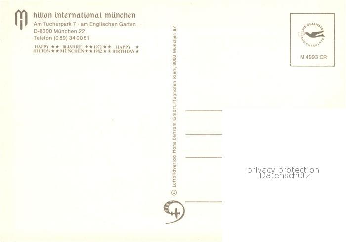 72951741 Muenchen Bayern Fliegeraufnahme Hilton International postalisch nicht gelaufen Erhaltung siehe scans [NatalD47] KatCode: 11110009162000