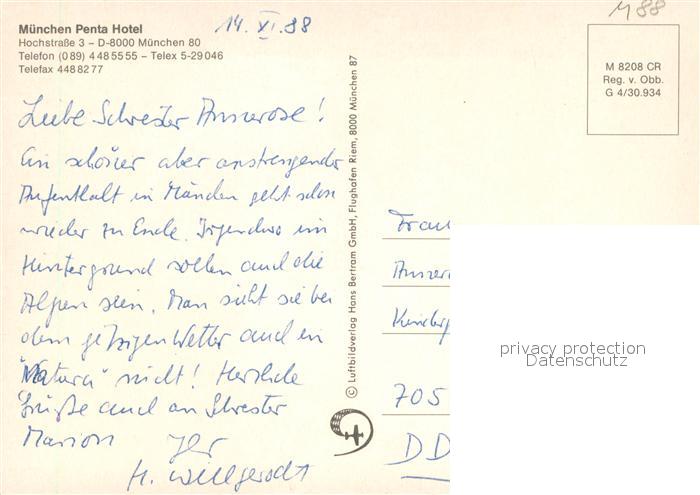 73656191 Muenchen Bayern Fliegeraufnahme mit Penta Hotel postalisch nicht gelaufen Erhaltung siehe scans [WerneD78] Wern Katcode 11110009162000