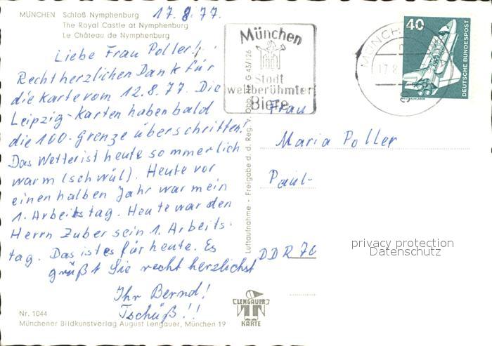 71847721 alte Postkarte Muenchen Bayern Fliegeraufnahme Schloss Nymphenburg postalisch gelaufen Erhaltung siehe scans KatCode: 11110009162000