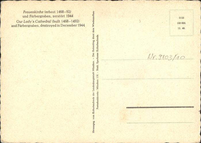 41215721 Muenchen Bayern Frauenkirche Faerbergraben postalisch nicht gelaufen gute Erhaltung Alte Ansichtskarte Postkarte hz_U Katcode 11110009162000