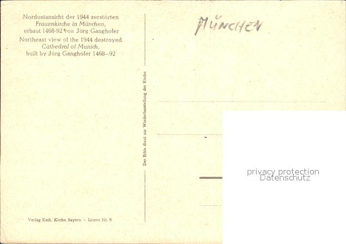 72149566 Muenchen Bayern Frauenkirche Nordostansicht zerstoert 1944 postalisch nicht gelaufen Erhaltung siehe scans KatCode: 11110009162000