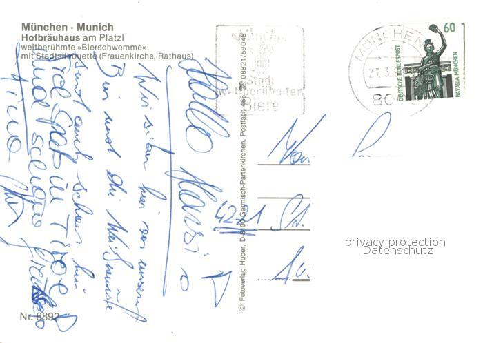 72962880 alte Postkarte Muenchen Bayern Frauenkirche Rathaus Hofbraeuhaus Bierschwemme postalisch gelaufen Erhaltung siehe scans [WerneD78] KatCode: 11110009162000