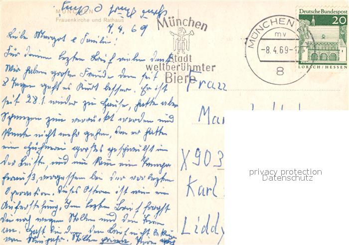 72970275 alte Postkarte Muenchen Bayern Frauenkirche und Rathaus postalisch gelaufen Erhaltung siehe scans [FriedD77] KatCode: 11110009162000