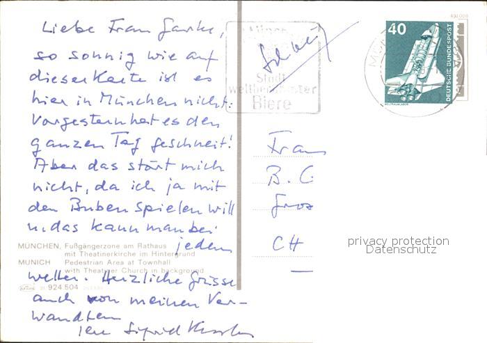 72367740 alte Postkarte Muenchen Bayern Fussgaengerzone Rathaus Theatinerkirche postalisch gelaufen Erhaltung siehe scans KatCode: 11110009162000