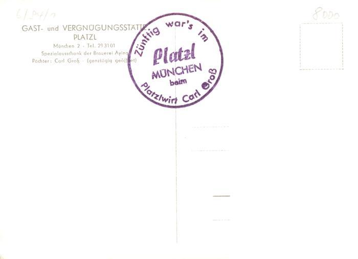 73911612 Muenchen Bayern Gast und Vergnuegungsstaette Platzl postalisch nicht gelaufen Erhaltung siehe scans [WerneD78] Wern Katcode 11110009162000