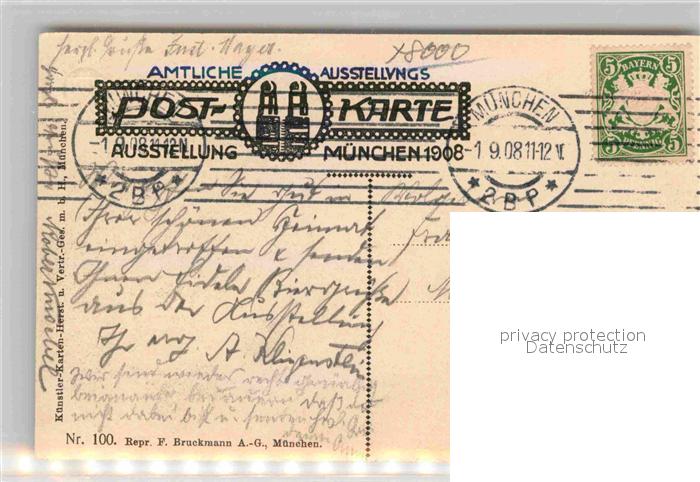 42690293 alte Postkarte Muenchen Bayern Gasthaus zum weissen Roessel Ausstellung 1908 postalisch gelaufen Erhaltung siehe scans [AndreD76] KatCode: 11110009162000