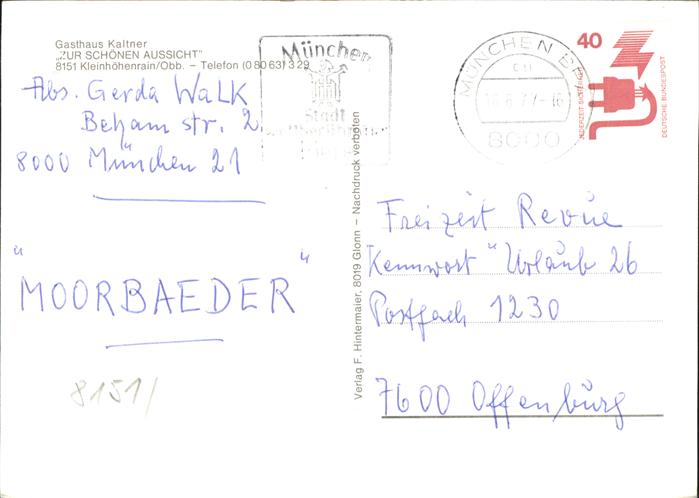 41214074 Muenchen Bayern Gasthof Schoene Aussicht postalisch gelaufen Alte Ansichtskarte Postkarte alte Postkarte hz_U Katcode 11110009162000