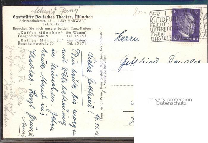 72150460 alte Postkarte Muenchen Bayern Gaststaette Deutsches Theater Gastraum postalisch gelaufen Erhaltung siehe scans KatCode: 11110009162000