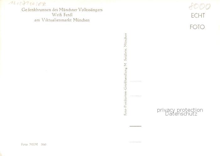 73868069 Muenchen Bayern Gedenkbrunnen des Muenchener Volkssaengers Weiss Ferdl am Viktualienmarkt postalisch nicht gelaufen Erhaltung siehe scans [WerneD78] Wern Katcode 11110009162000